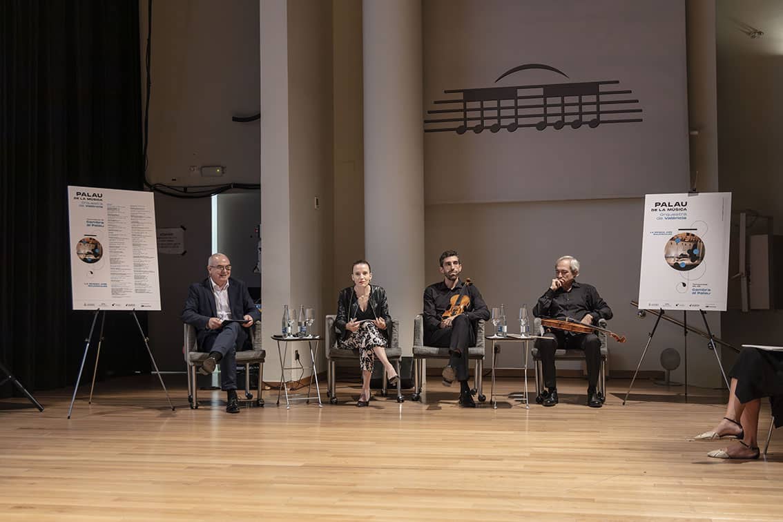 El director del Palau de la Música de València, Vicente Llimerá; la subdirectora de Música, Nieves Pascual i els professors de l’Orquestra de València, Luciano Casalino i Santiago Cantó, han presentat als mitjans de comunicació la nova edició del veterà cicle “Cambra al Palau” de l’auditori valencià.