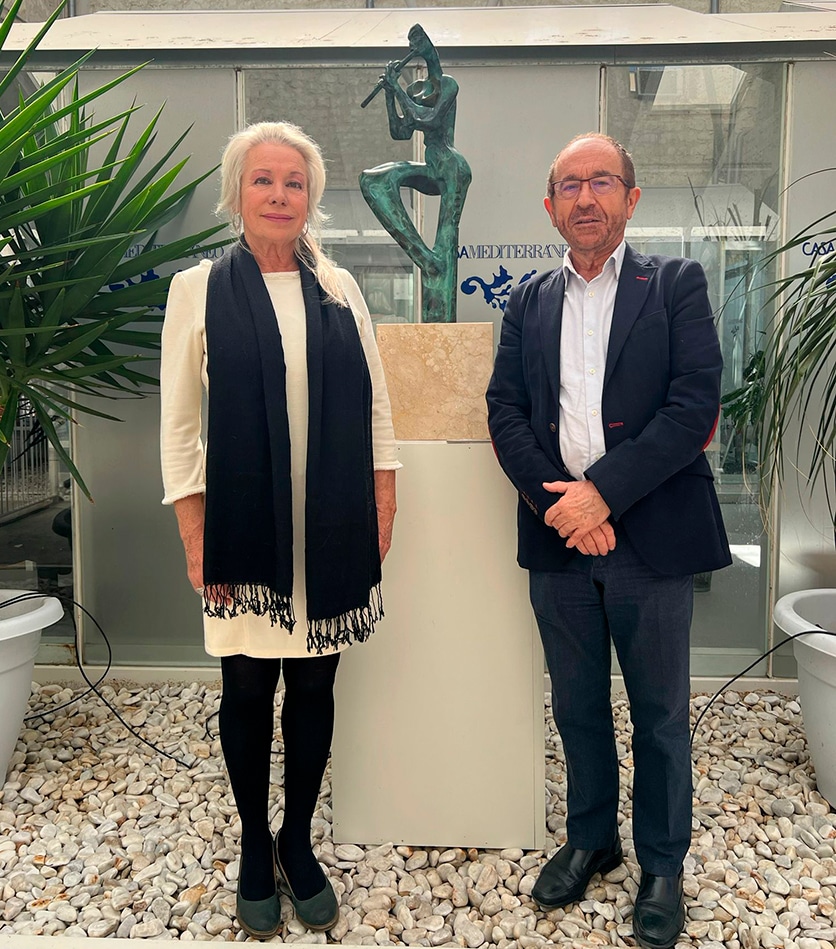 El legado del escultor Jorge Castro Flórez, con una extensa trayectoria escultórica que le ha llevado a exponer en países como Austria, Francia, Alemania, Estados Unidos o Canadá, muestra su visión artística sobre esta figuraa través de su obra “El llamado de Euterpe”, una pieza de bronce realizada en 1997. La escultura, de 80 x 30 x 30 cm., se cede temporalmente a Casa Mediterráneo para su exhibición hasta final de año, gracias a Coral Pastor, directora de la Colección Privada Jorge Castro Flórez. La obra se expondrá en la sede de la institución diplomática a partir del 8 de marzo, fecha de celebración del Día Internacional de la Mujer.