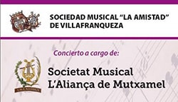 Este sábado 28 de marzo, la Sociedad Musical La Amistad de Villafranqueza será la anfitriona de la Societat Musical La Aliança de Mutxamel, de la localidad vecina, en un concierto que interpretarán en el auditorio José Torregrosa Alcaraz de Villafranqueza.